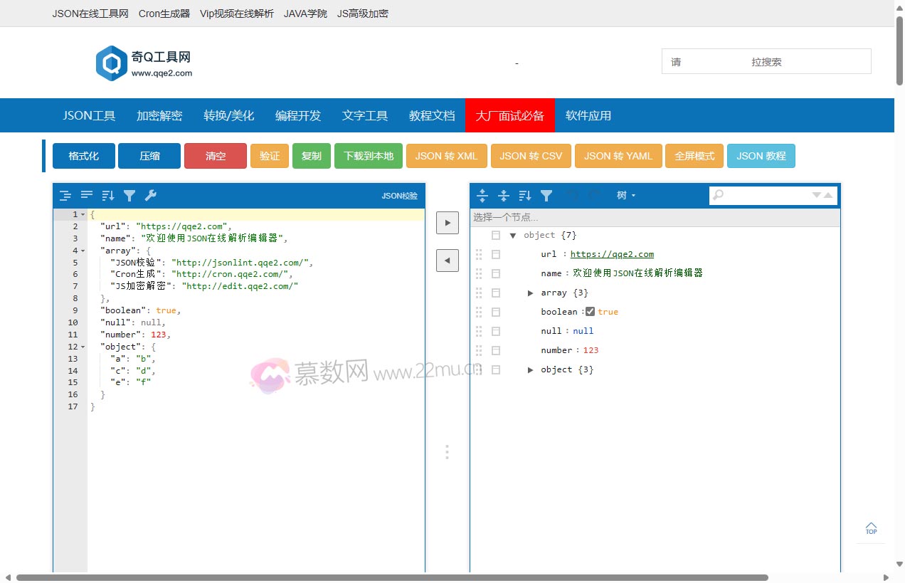 JSON在线编辑器-奇Q工具网官网